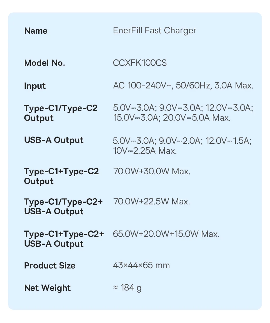 - Mix USB-C and USB-A outputs for 70W + 22.5W when charging different device types at once.