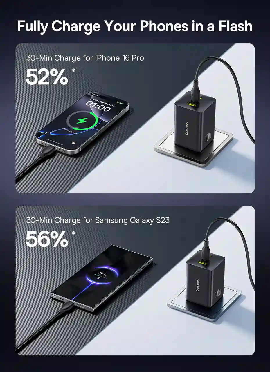 - Cuts charging time dramatically, an iPhone 16 Pro reaches around 52% in just 30 minutes.